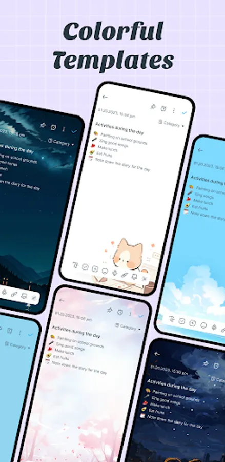 Notepad features large colorful themes and templates that you can unleash the creativity of designers by storing memos, daybooks with images, videos and icons.