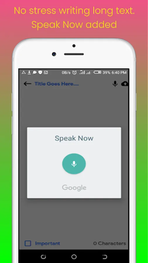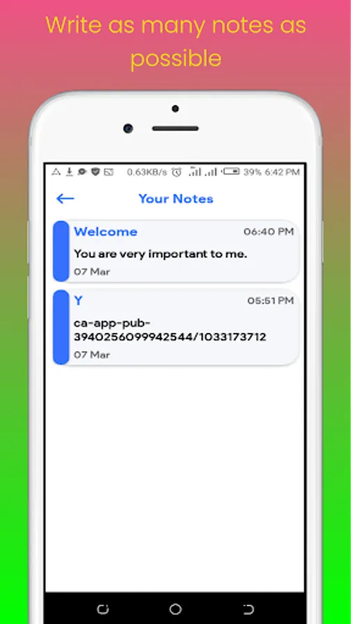 * No limits on note's length or number of notes (of course there's a limit to phone's storage)