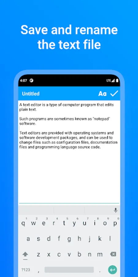 Simple Text Editor app to open, edit, delete, rename, and save text files to and from the SD card.