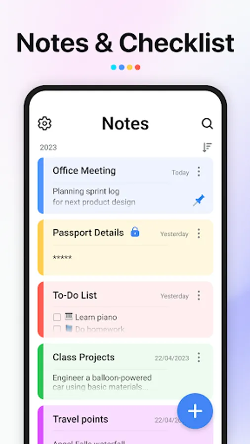 Use Notes App to capture a quick thought, create checklists, sketch ideas, and more. And with Google drive backup, you can keep your notes up to date across all your devices.