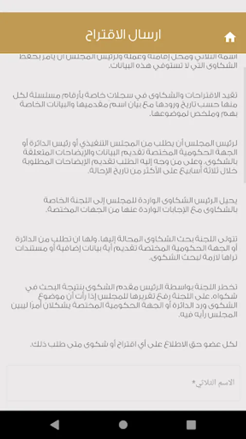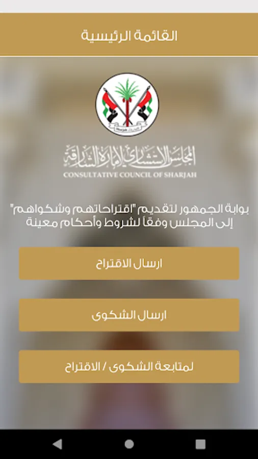 The public portal to submit their "suggestions and complaints" to the Sharjah Government Advisory Board under certain terms and conditions