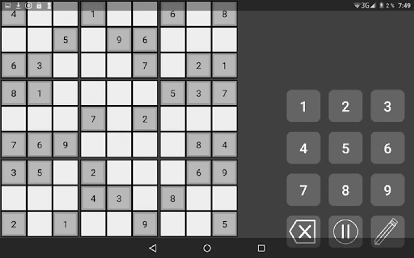Sudoku is game of numbers. You should place number from 1 to 9 without repeat, in every row and column. You have primary placed numbers, the difficulty is to make no repeat.
