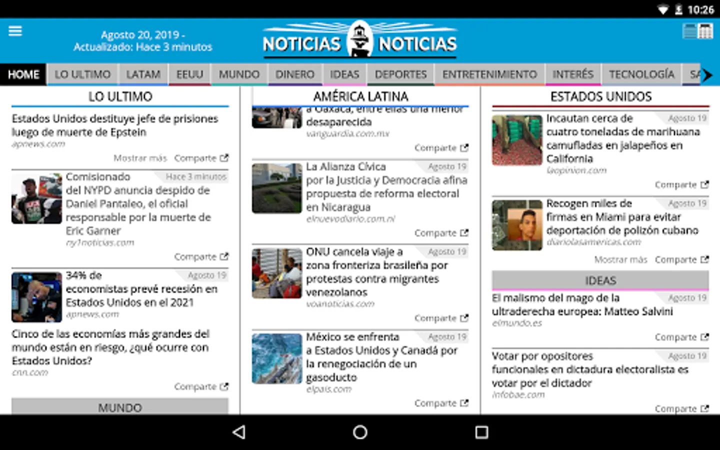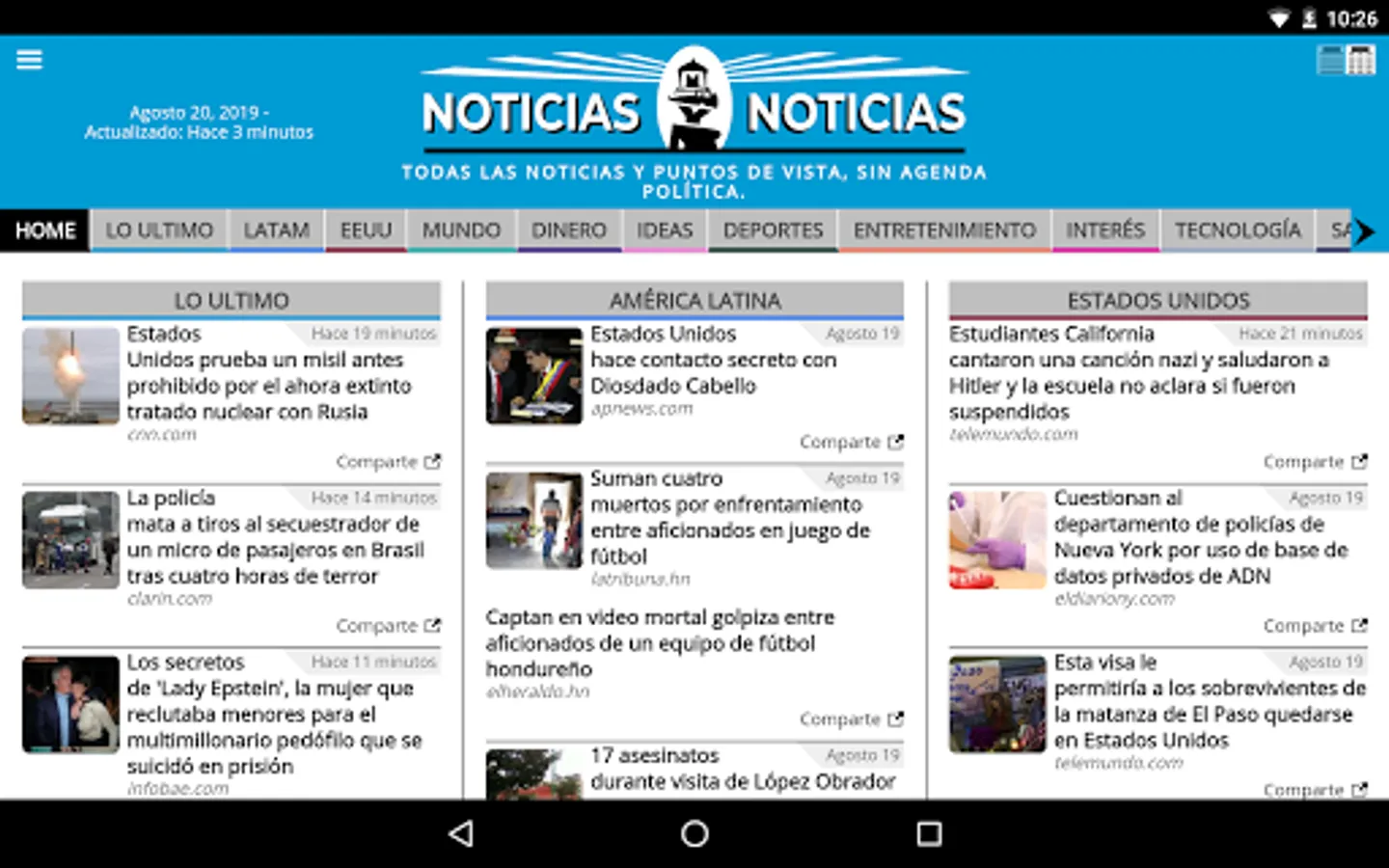 Our professional (human) editors scan thousands of sources around the clock to ensure that NoticiasyNoticias.com and our apps present a constant flow of new information from all points of view.
