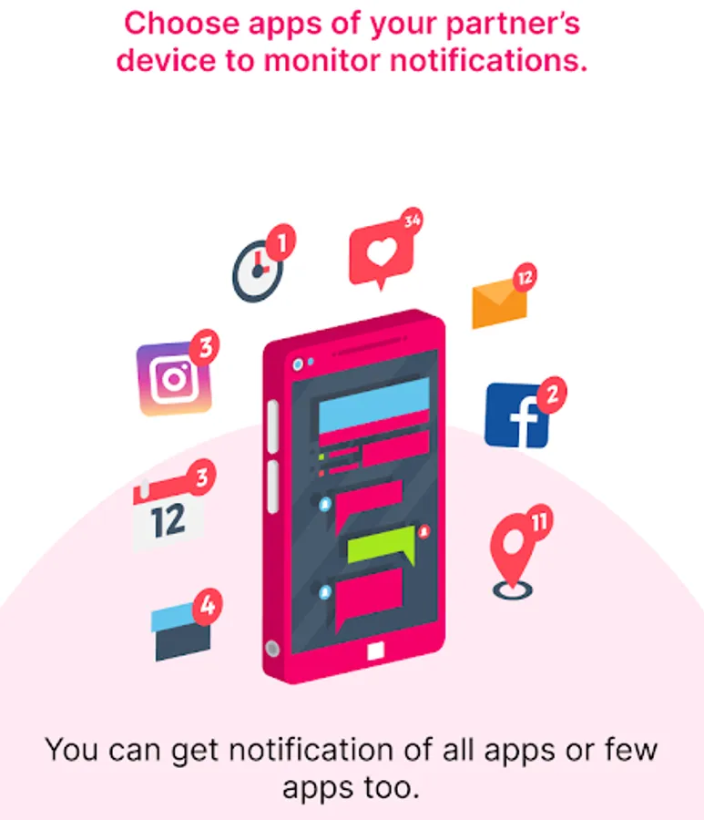 🔔 Choose specific apps to monitor or track all notifications received on the child's device;