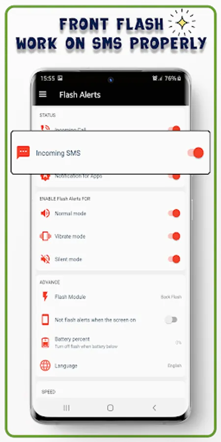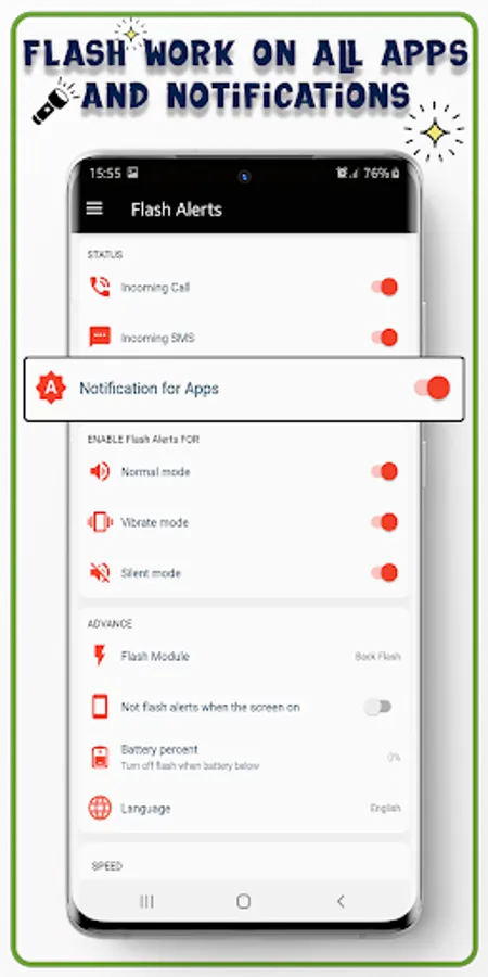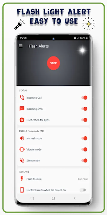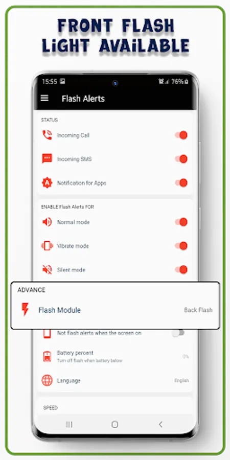 - Flash blink work on the rear flash camera and front flash camera if available on your android phone