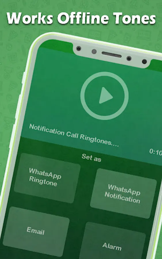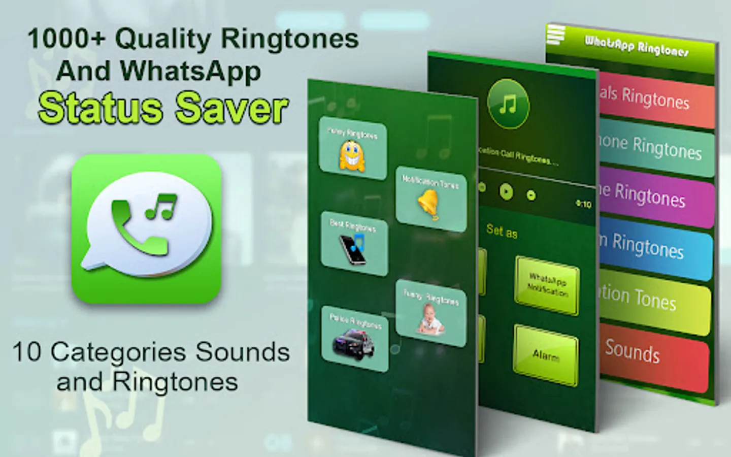 The Notification tones for WhatsApp are selected carefully with high quality, uniqueness: Funny best ringtones, Baby ringtones, Animal ringtones, WhatsApp Message tones, Pop, Rock, Hip-hop, Country, Ringtones remix, Christian & Gospel, Bollywood, Alarm.
