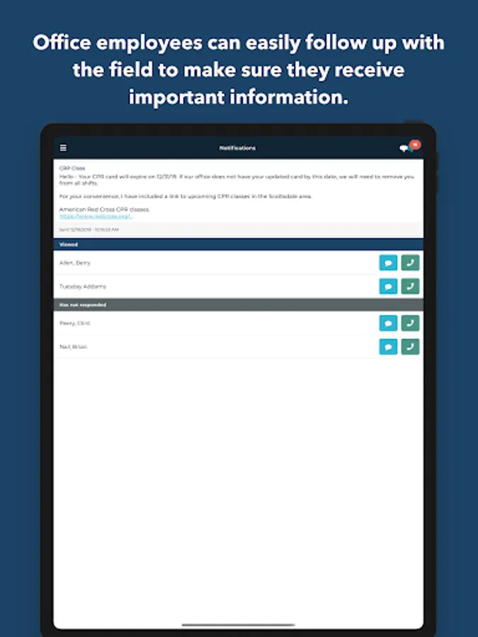 Your employees are working too hard to communicate in a HIPAA compliant manner. Working through call lists one at a time is cumbersome, leads to lower staffing rates, and takes up a lot of your team's time. Talking in code over text and email leads to miscommunications, frustration, and mismanagement.