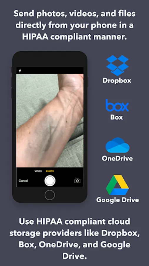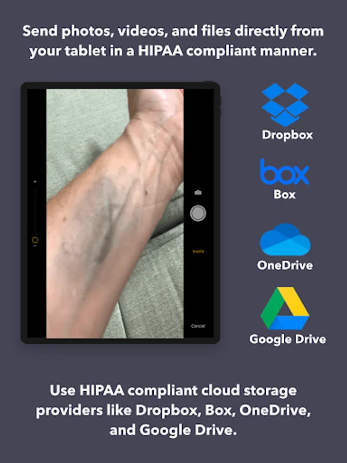 Email attachments, text messages, and paper printouts are insecure and leave you at risk for HIPAA breaches. Our messaging app integrates seamlessly with the most popular HIPAA compliant, cloud document storage solutions making sharing documents fast, organized, and secure.