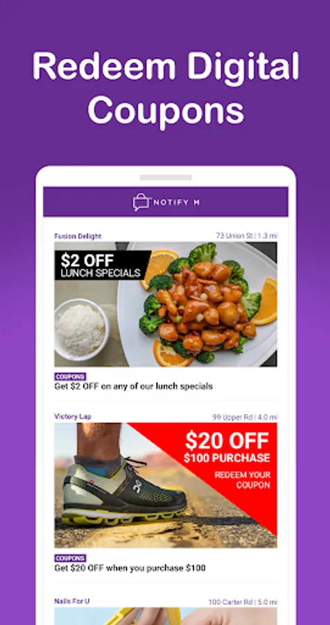 NotifyM provides you the best deals "in-the-moment"! Stay informed, save time, get notified with NotifyM!