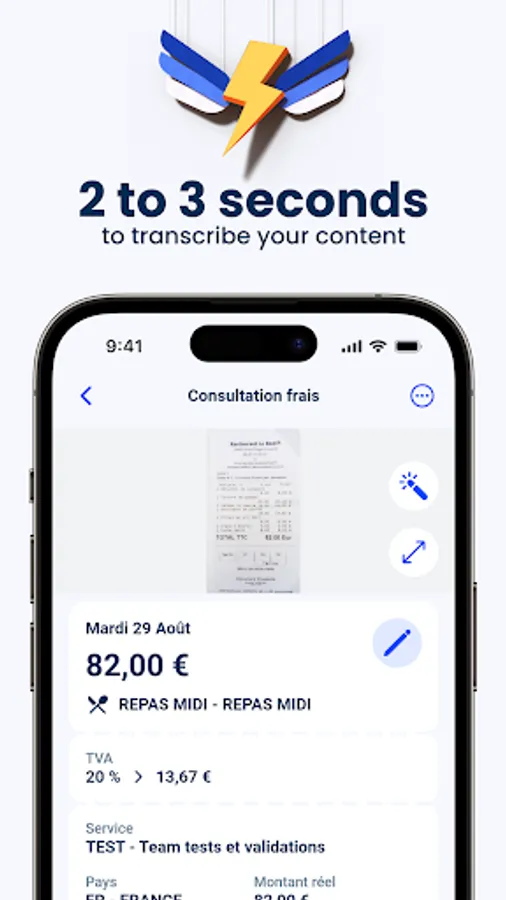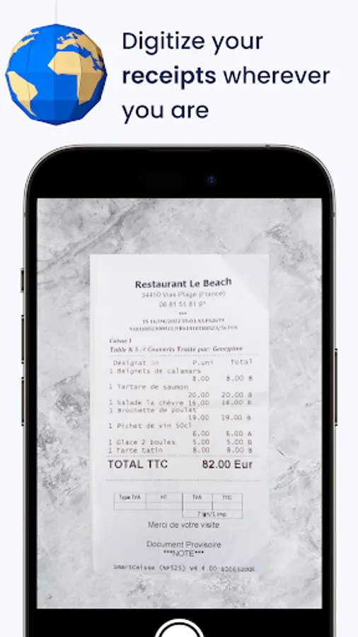 Process your expense reports more easily. Take a picture of your expense report receipt, the app scans it and automatically recognizes each piece of information with our OCR (Optical Character Recognition), with one of the best recognition rates on the market.