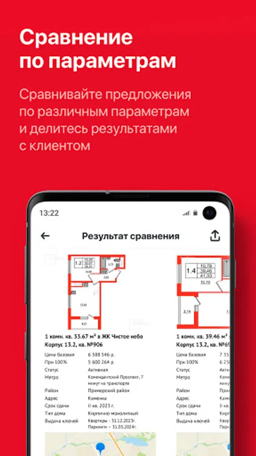 Use your favorite work tool wherever you are. Conduct consultations remotely in a place convenient for the client. Access to apartments, mortgage calculator, apartment reservations, as well as a convenient database of your clients - in one application.