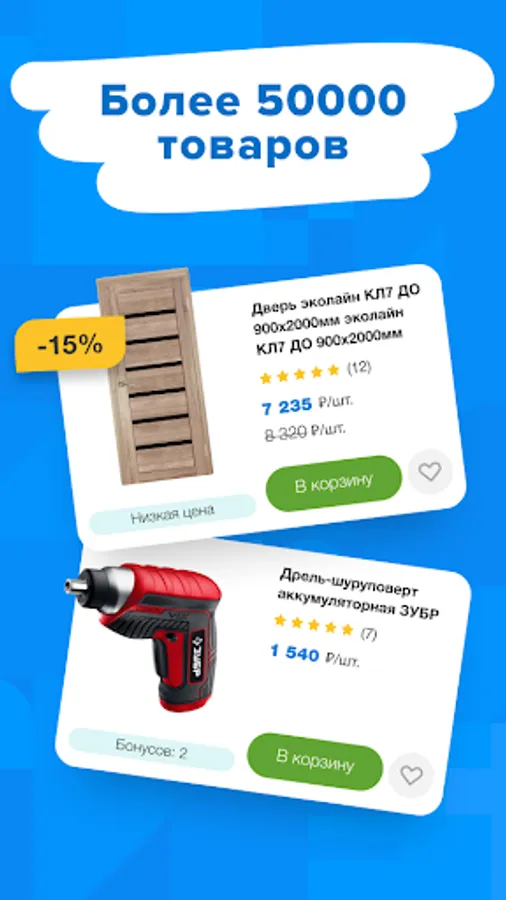 To use the advantages of an online store, choose goods for construction or home improvement, just download the application. Explore the range of building and finishing products, get advice and place an order online with a minimum of effort.