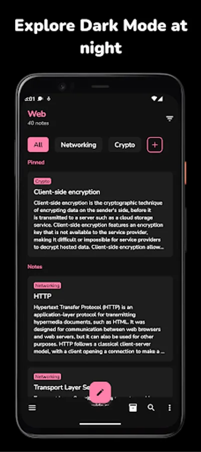 Do you want to check your notes at night? No problem! Noto supports auto dark mode by default. You can also keep Noto’s theme always light, dark, or black depending on your needs.