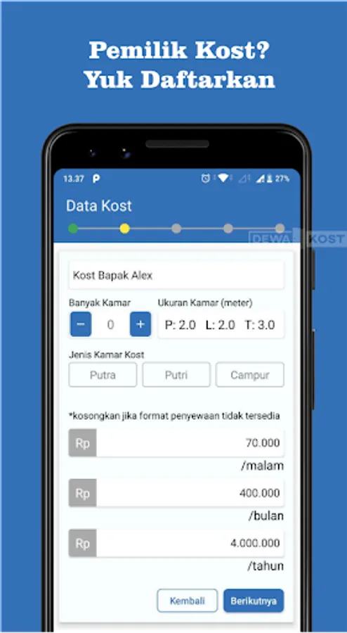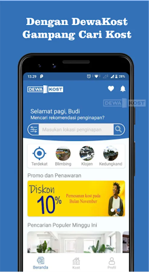 DewaKost Application of Pemsanan Kost Area Malang and Surrounding Areas.