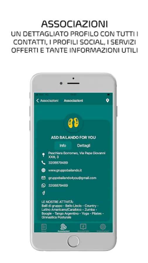 • Associations: companies, associations and sports bodies active in the city, the proposed activities, contacts and useful information