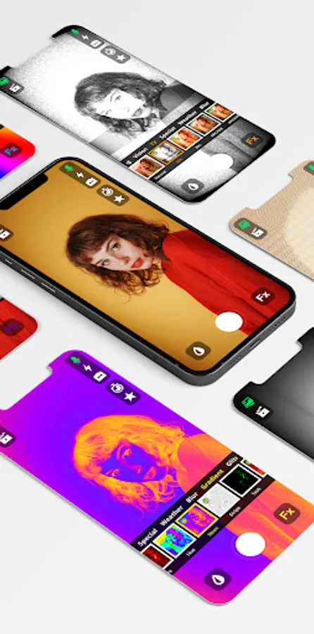 • Glitch, Rain, Earthquake, Thermavision, VHS, Vintage, Fish Eye, Dissipation, Dream & so much more.