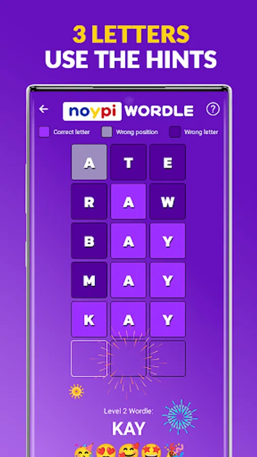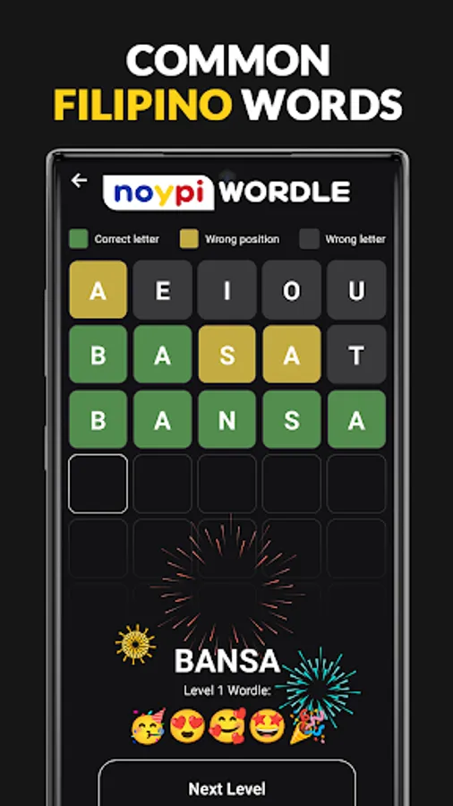 Noypiworlde is a simple word guessing game where you put a series of letters in boxes and form a filipino word. Each boxes will turn in different colors which provide color hints and clues to guess the correct word.