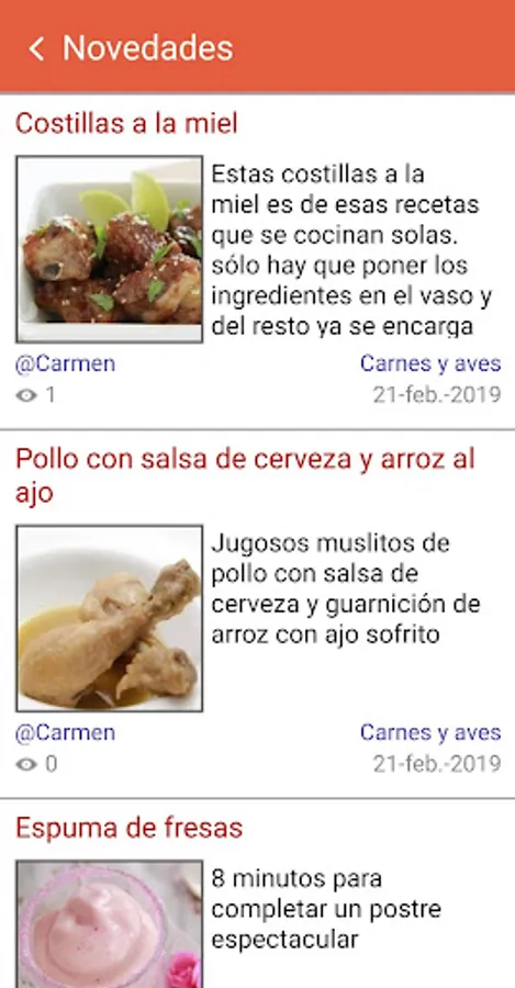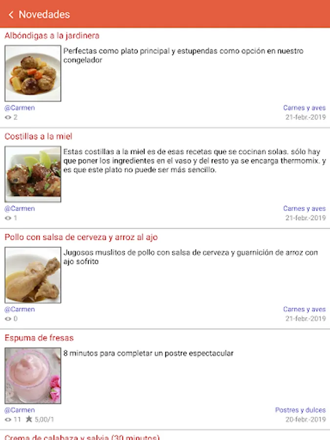 Fácil de utilizar, versátil y muy atractiva para encontrar recetas de todo tipo, ordenadas por categorías peo también con secciones interesantes como "Novedades", "Las más valoradas", "Las más leídas"...