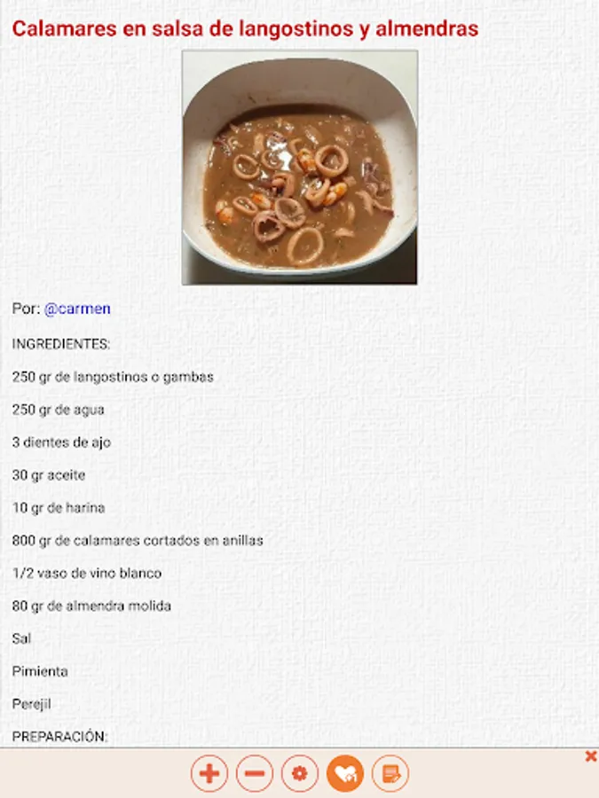 También puedes guardarte tus recetas favoritas, consultar las últimas que has abierto y comentar y valorar las recetas que has probado.