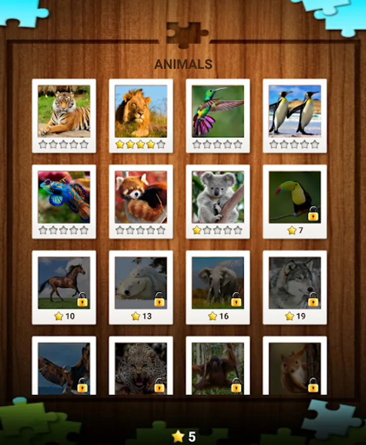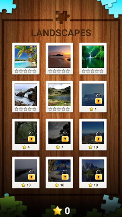 Start the game with five puzzles available in each gallery and get stars by solving them; 1, 2, 3, 4 or 5 depending on the level of difficulty.