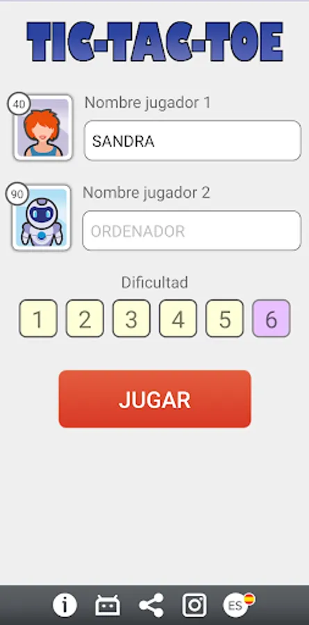 In the game in MODE AGAINST THE COMPUTER, games of 5 rounds will be played against the computer. You can choose between six different levels of difficulty: