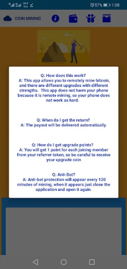 The mining process is carried out remotely online. You do not need to collect and configure the farm. Using our bitcoin miner simulator is very simple. The phone will not consume much power while the app is running. The application is extremely careful about the hardware and software resources of the device. You are offered in a bitcoin miner game that allows you to feel like a real crypto investor. We tried to make the interface as simple and clear as possible. Bitcoin mining can be carried out while you are doing your usual business, and the phone is in standby mode. Remember - the number of miners is constantly growing. The "difficulty" of the blockchain network is also increasing. When you start bitcoin mining with our application, you become a member of a common network. The goal of each participant (miner) to mine more quickly as possible. Bitcoin mining with the simulator is as fast and convenient.