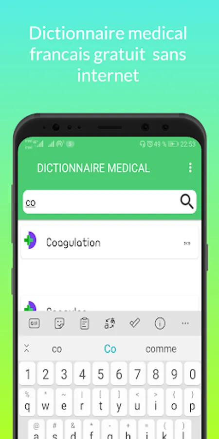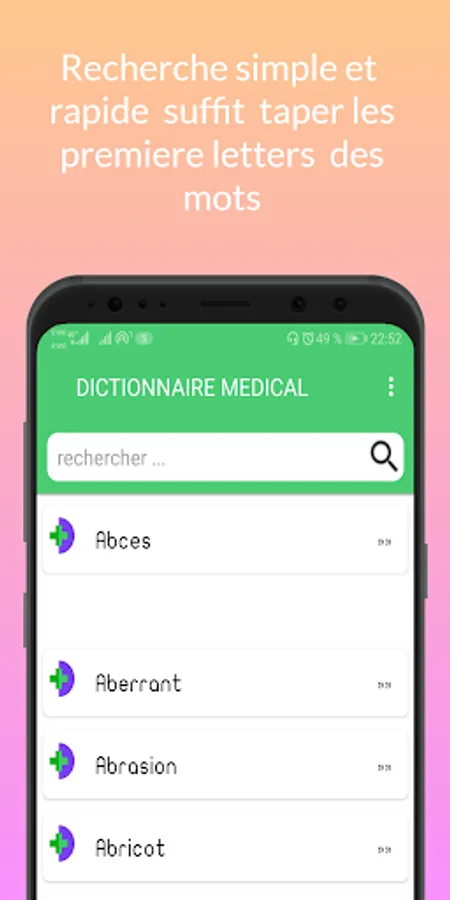 Equipped with an intuitive interface, the use of this dictionary is very user-friendly thanks to its layout in the form of a drop-down list as well as the presence of a search function, favorites (to classify the words often consulted) and the possibility to consult the history of the terms already displayed, so you only need a few seconds to find the meaning of your medical term.