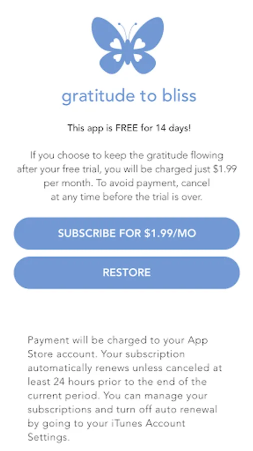 The Gratitude to Bliss App will give you 14 days of free trial to practice gratitude.
