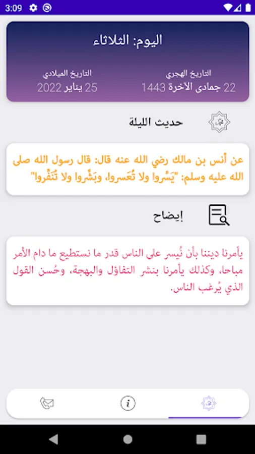 The hadiths were divided into the days of the Hijri months, taking into account some occasions to be accompanied by hadiths related to them, such as the nights of the month of Ramadan, the ten days, and others.