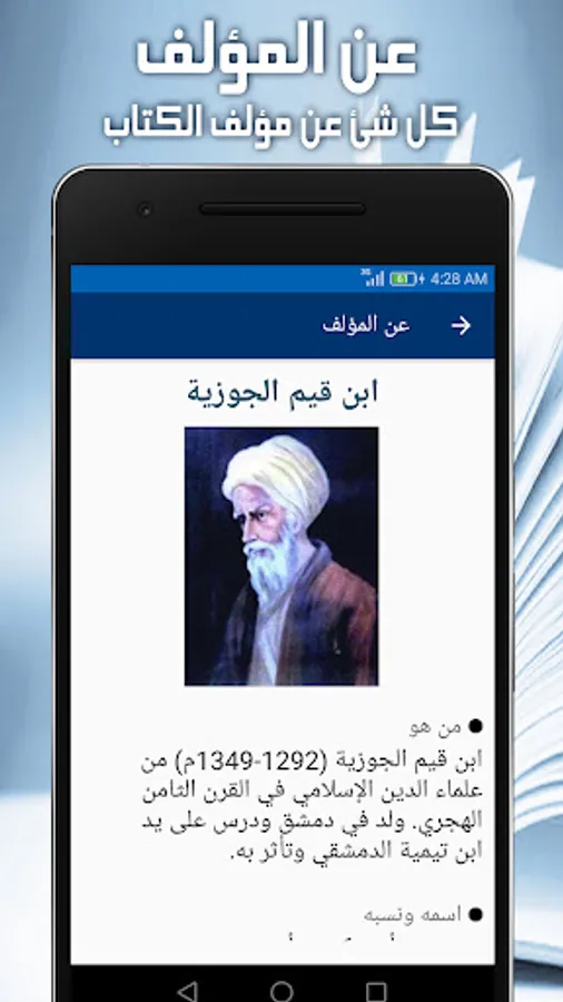 Muhammad bin Abi Bakr bin Ayyub bin Saad Al-Zar’i Al-Dimashqi, Shams Al-Din, Abu Abdullah, known as Ibn Qayyim Al-Jawziyah. Of the flags of Islamic religious reform in the eighth century AH. He was born in Damascus to Kurdish parents and studied under Ibn Taymiyyah al-Dimashqi, who is also from Kurdish parents and was influenced by him. His profession was the Imamat Baljouzia. Teaching in the vest and other places. Addressing the fatwa and authorship. His contact with Ibn Taymiyyah The word of the historians agreed that the date of the meeting was since the year 712 AH, the year in which he returned from his trips to Damascus and settled there until he died in Damascus in the year 751 AH.