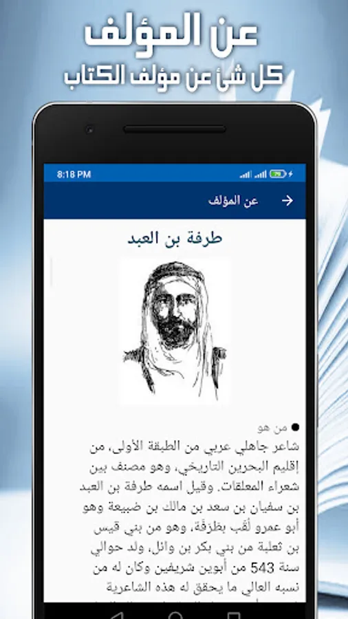 Enjoy reading Diwan Tarfa bin Al-Abd with the best application for books, stories, poetry, and collections without the Internet and many other advantages
