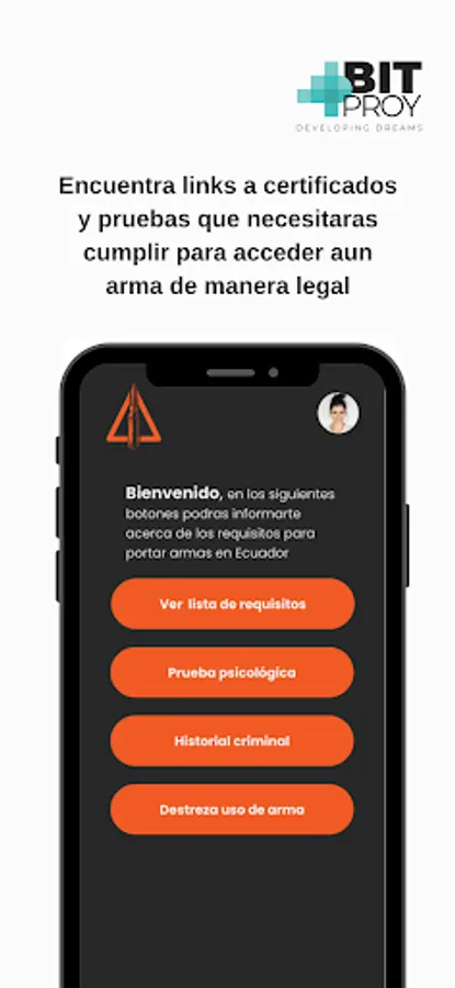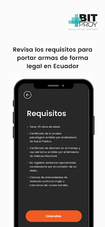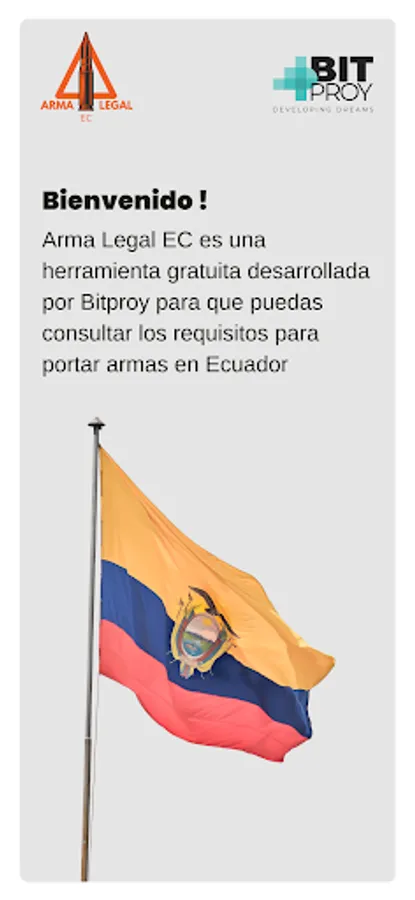 The "ArmaLegal" application provides information to users about the necessary requirements to obtain a legal weapon in Ecuador