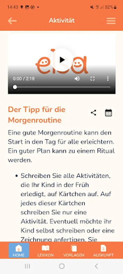 ELSA provides scientifically tested and customized recommendations for the everyday lives of guardians of children with attention deficit hyperactivity disorder (ADHD). These depend on the children's abilities and are based on occupational therapy knowledge. The app was developed together with families of children diagnosed with ADHD to adapt it to their needs.