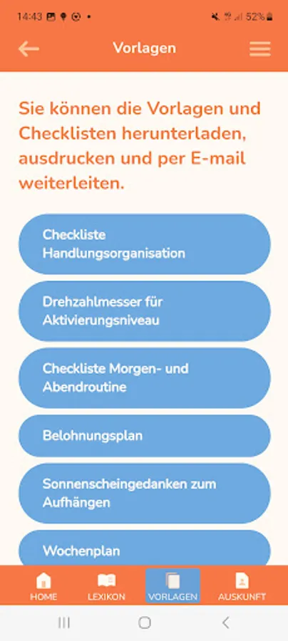 All tips are available as video and text. Lexicon entries, printable templates and information about contact points (hospitals, outpatient clinics) supplement the everyday recommendations.