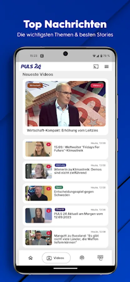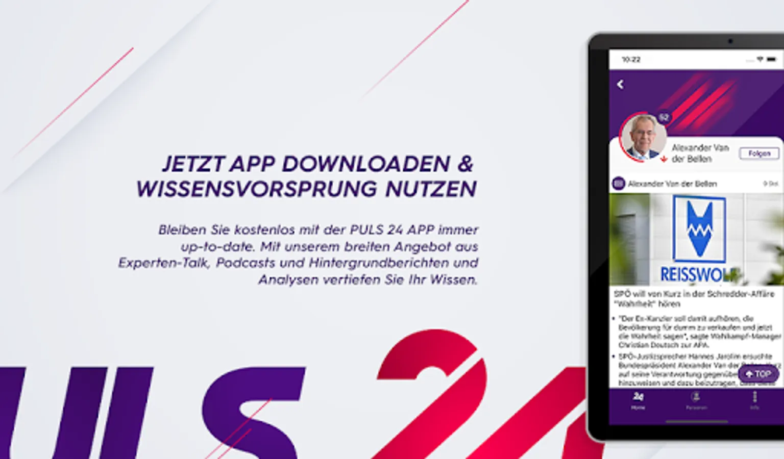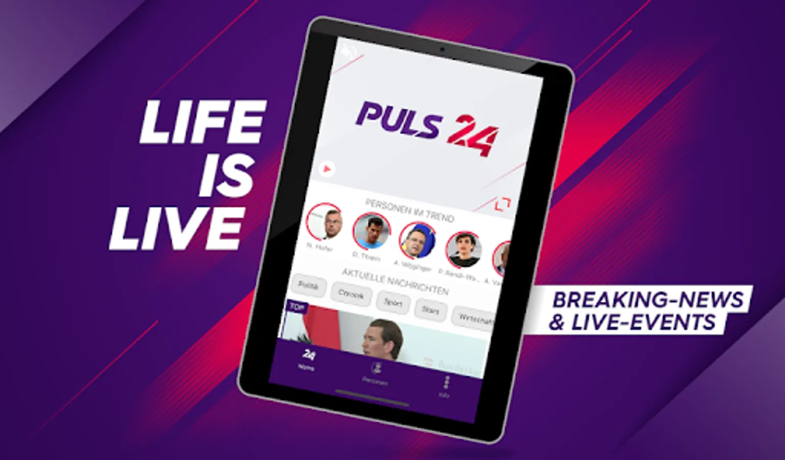 + Don't miss anything on the go with the 24/7 live stream! Follow current events with the PULS 24 live stream for precise information on the pulse of the times as well as breaking news whenever it is important