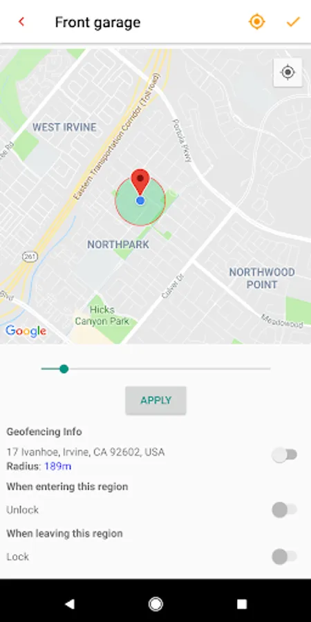 - Geo-fencing feature (with programmable distance) automatically closes the garage door when you leave home and opens it when you return.