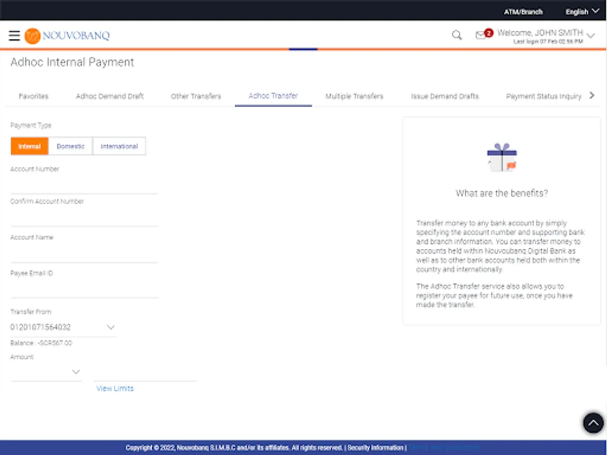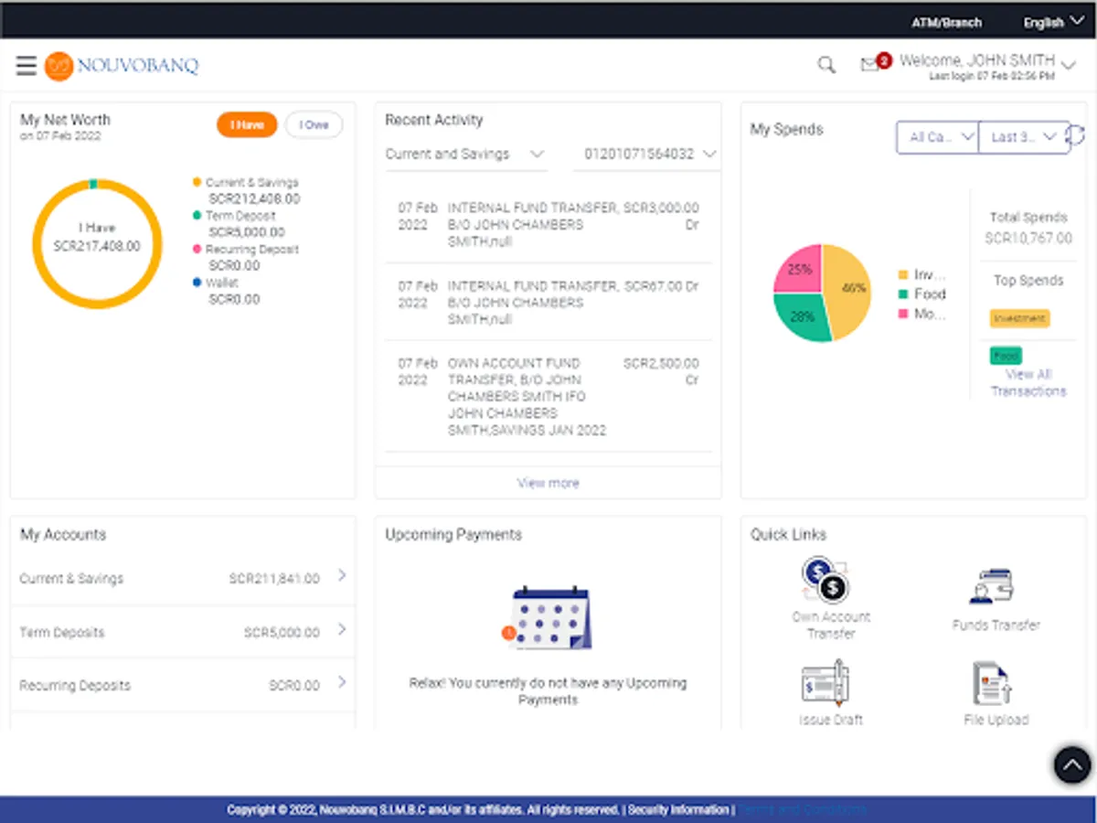 NouvoConnect offered by Nouvobanq S.I.M.B.C. for it's retail and corporate customers.
