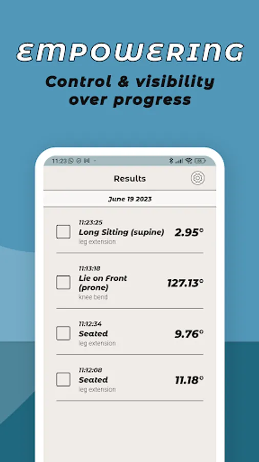 Bodii Flex has been specifically designed to enable efficient knee Range of Motion monitoring during an appointment and at home. Physiotherapists may use the Bodii Flex as an alternative to a Goniometer, download results and share.
