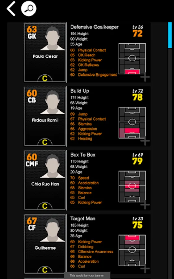 • Keeps track of player condition throughout the season to help you make better decisions on who to level-up.