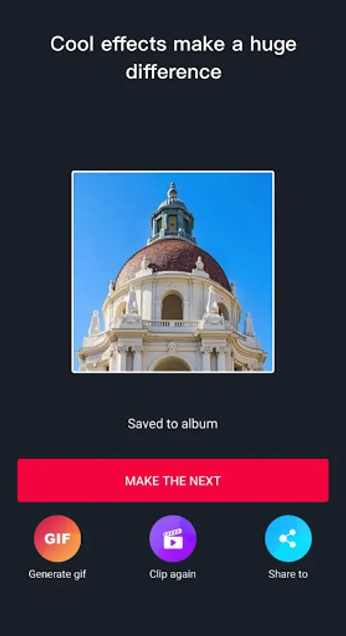 -Short Video Maker provides 720P/1080P HD export with no quality loss and no duration limit. You can save the video or slideshow to your draft or album at any time.