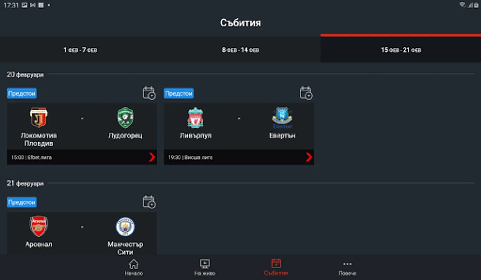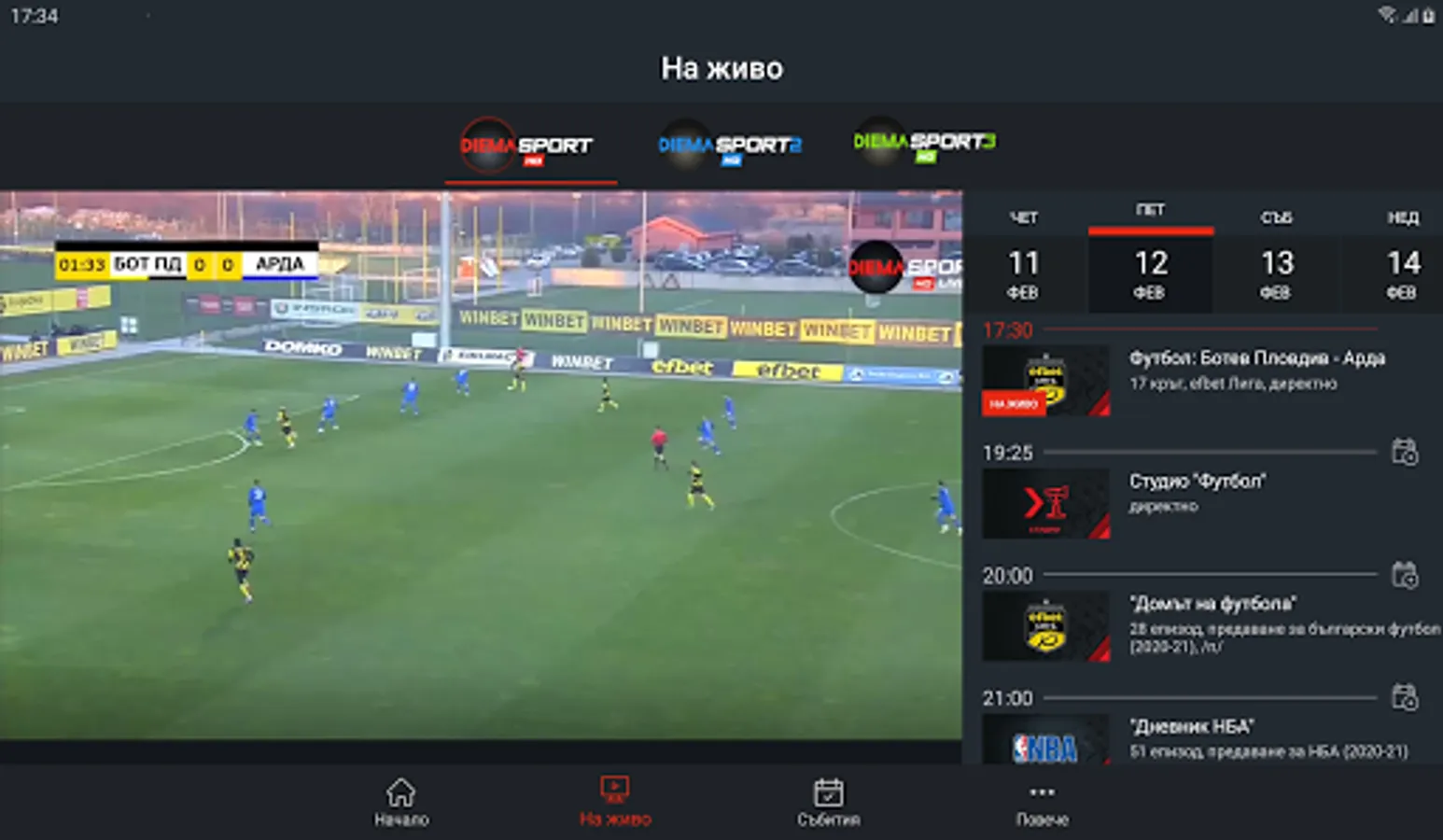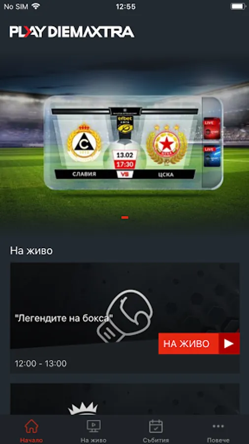 Register at https://play.diemaxtra.bg/ and enjoy the best of The First and Second Bulgarian Professional Football Leagues, The Cup of Bulgaria, be at the heart of the Premier League events, Championship and FA Cup, Formula 1, NBA, watch professional boxing, the best Bulgarian volleyball and many more sports events from around the world.