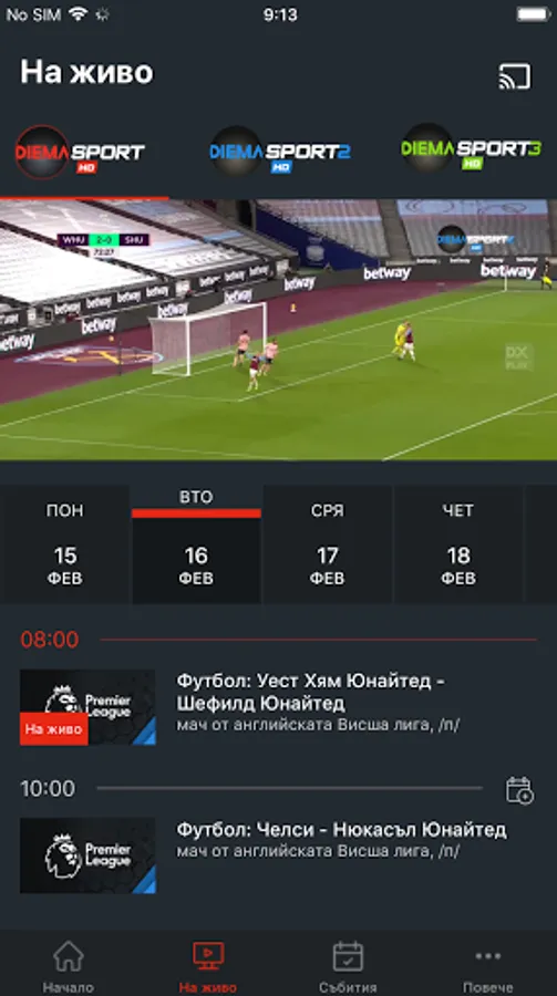 With PLAY DIEMA XTRA subscription you get unlimited real-time access to the most spectacular sports events from DIEMA SPORT and DIEMA SPORT 2 TV channels. Stay on top with excellent HD video quality and convenient menu in Bulgarian on your mobile device and PC.