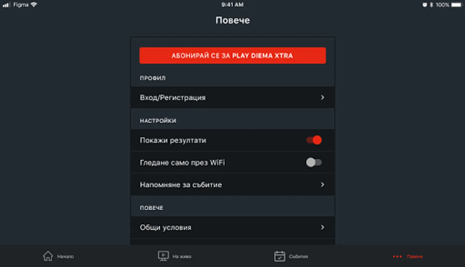The PLAY DIEMA XTRA app is available for Bulgaria over WiFi and mobile 3G/4G networks with adaptive streaming quality, so you will never miss a moment from the spectacle.