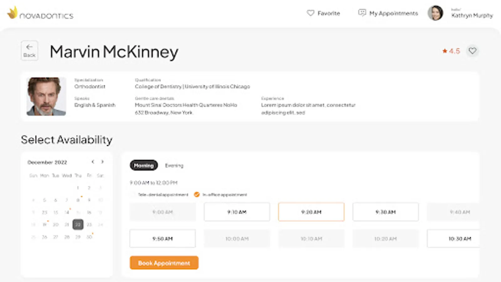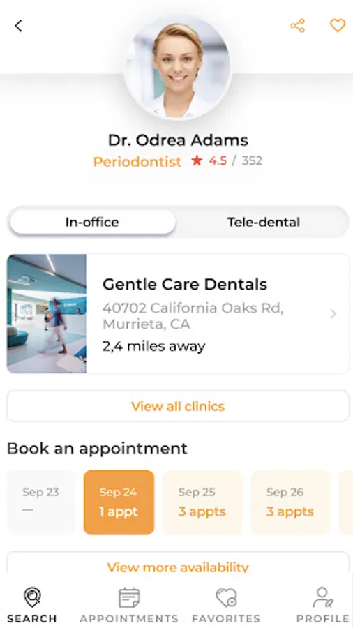 easily compare dental offices based on their amenities and services, and read patient reviews.Once you have selected your clinic or provider, you can see all of their available appointment