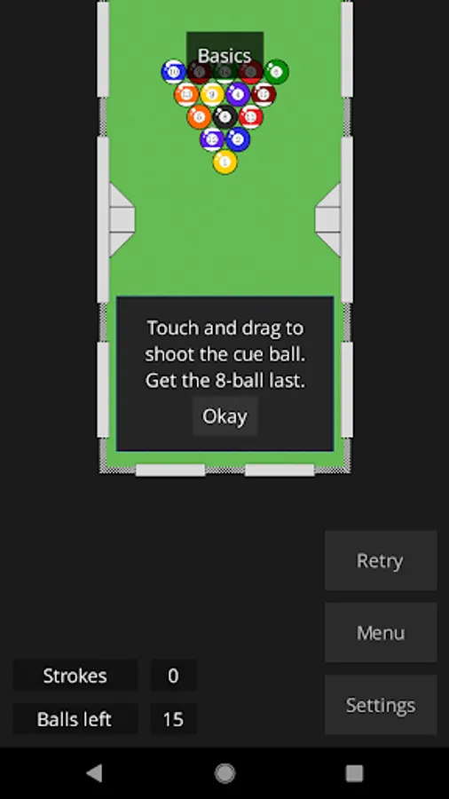 Try to get all the balls in in a low amount of strokes, but don't forget to get the 8-ball last!