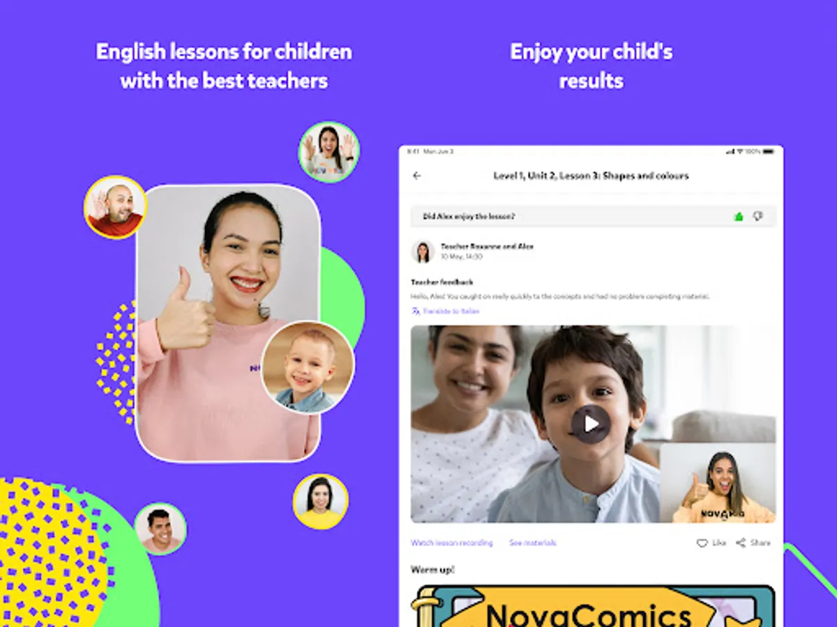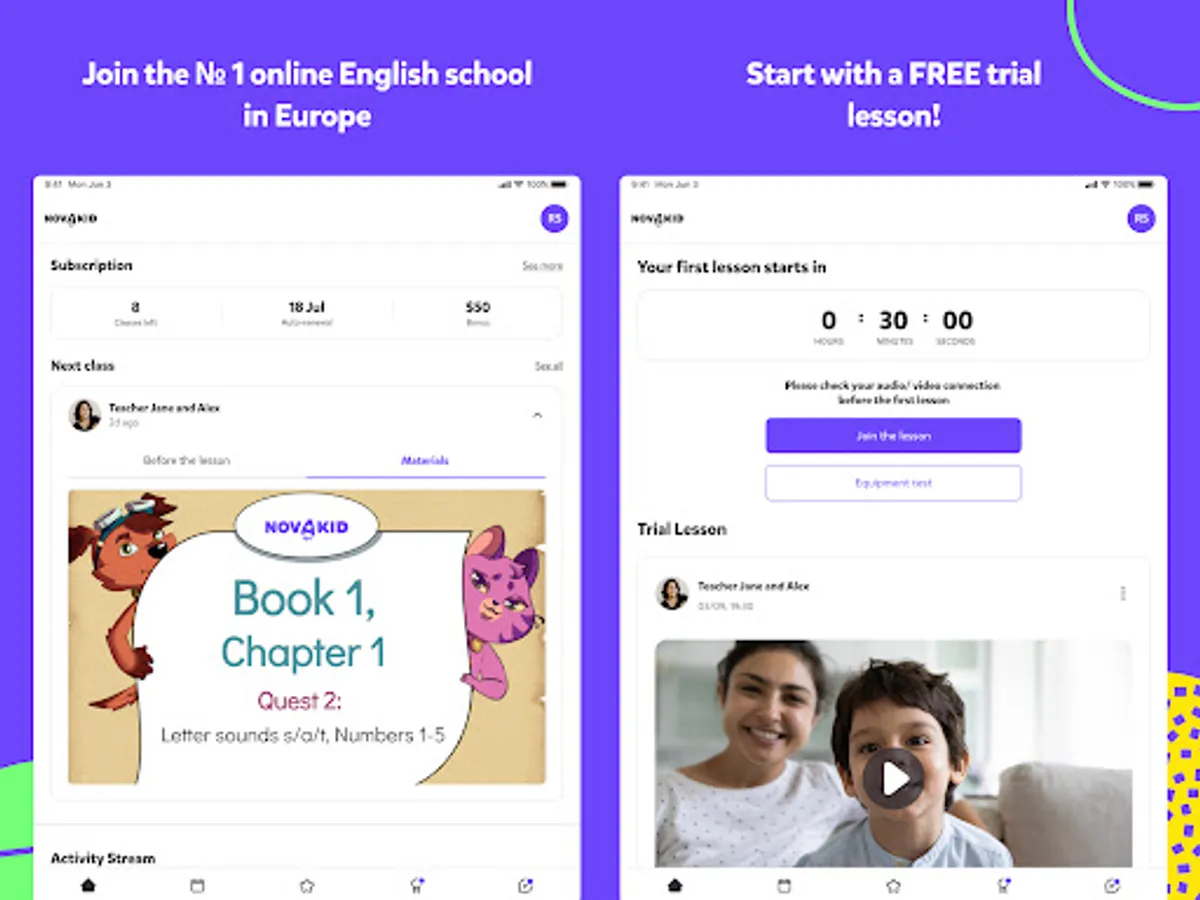 We offer online English classes with native speakers for students from all over the world. In a friendly interactive way Novakid teachers manage to explain the material and show how English works in the real life.