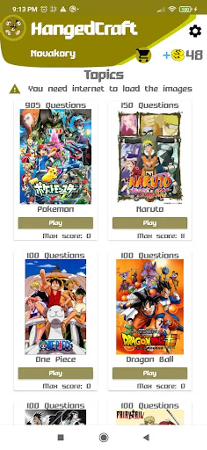 The game features two categories and eleven different themes, three of general culture and eight of anime.