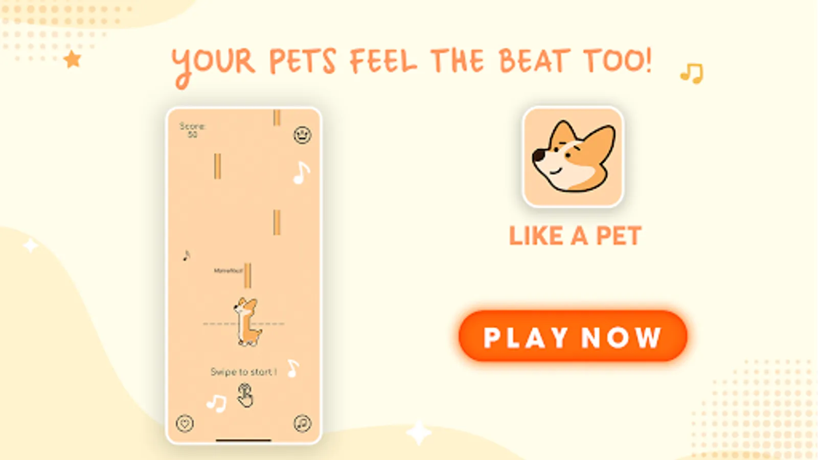 Challenge yourselves and your pets with exciting beats and rhythm. Collect as many music notes as possible to become the master of melody. Your pets bring so much joy as they turn into funny characters when they collect many notes.