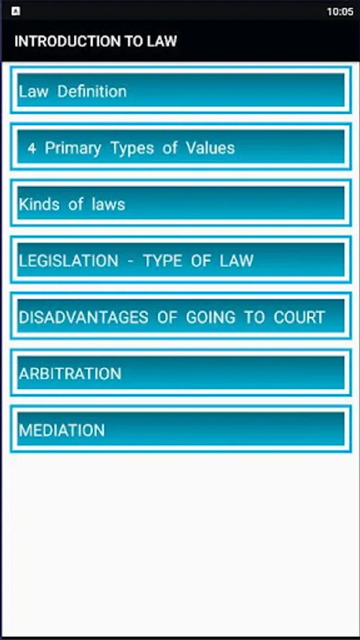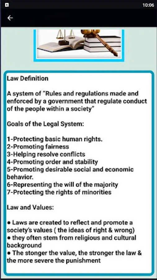 Introduction to Law is an offline guide app for the students who wants to keep introduction to law notes on their mobile phone for study purpose. INTRODUCTION TO LAW AND LEGAL REASONING. LAW is man made. And it changes over the time to accommodate the society needs. Some of the following topics are covered in this educational app.