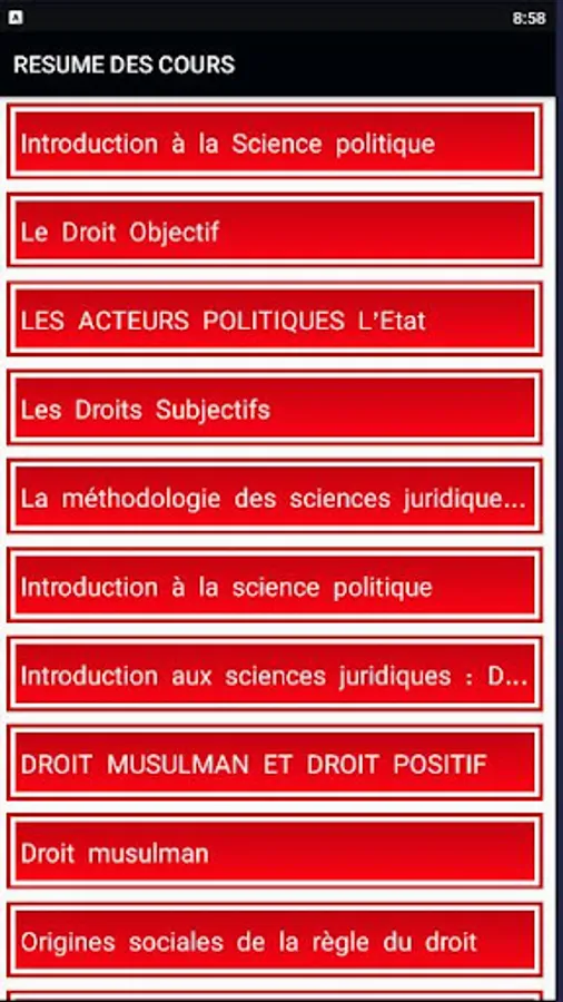 in this application you will find the Summary of the courses addressed to all people in general and to judges, lawyers, researchers and students specializing in the field of law in particular.